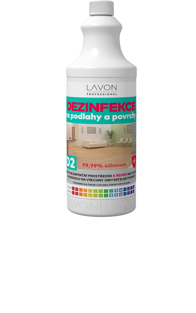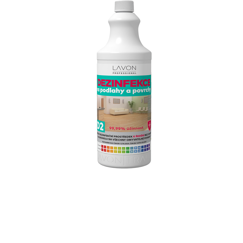 LAVON dezinfekce na podlahy a povrchy D2 1 l je biocidní čisticí přípravek s vysokou pěnivostí do potravinářství, průmyslu, domácností a veřejných prostor.
