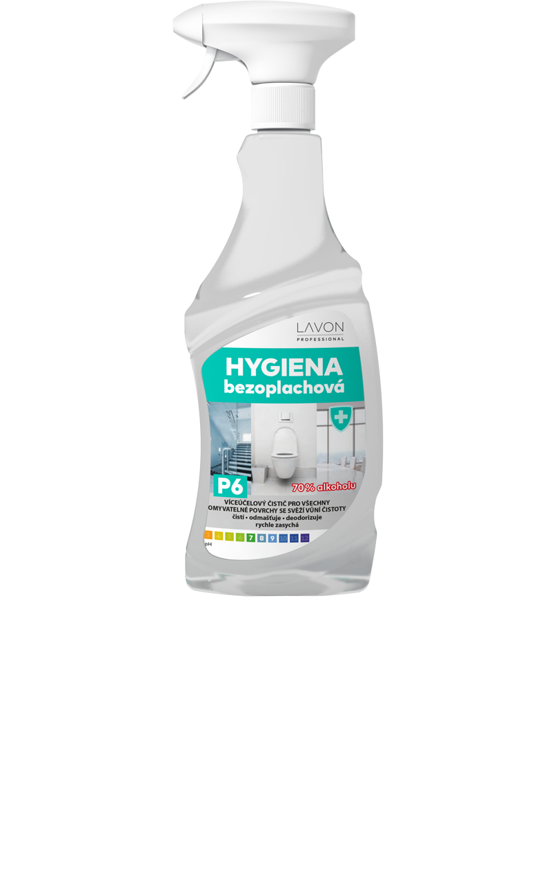 Lavon hygiena bezoplachová 500 ml je víceúčelový čistič pro všechny omyvatelné povrchy odolné alkoholům - SKLO, KLIKY, ZÁBRADLÍ, VYPÍNAČE, WC PLOCHY, BATERIE, KUCHYŇSKÉ PLOCHY, NEREZ a další. Čistí povrchy beze šmouh se svěží vůní čistoty.
