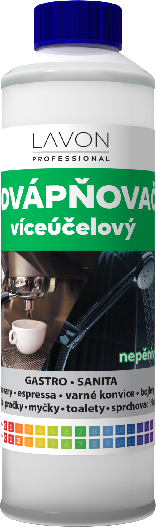 Lavon odvápňovač víceúčelový 1 l je koncentrovaný, nepěnivý prostředek na odstranění vodního kamene, rzi a minerálních usazenin pro kávovary, espressa, varné konvice, bojlery, ohřívače, žehličky, pračky, myčky, toalety, sprchovací hlavice.