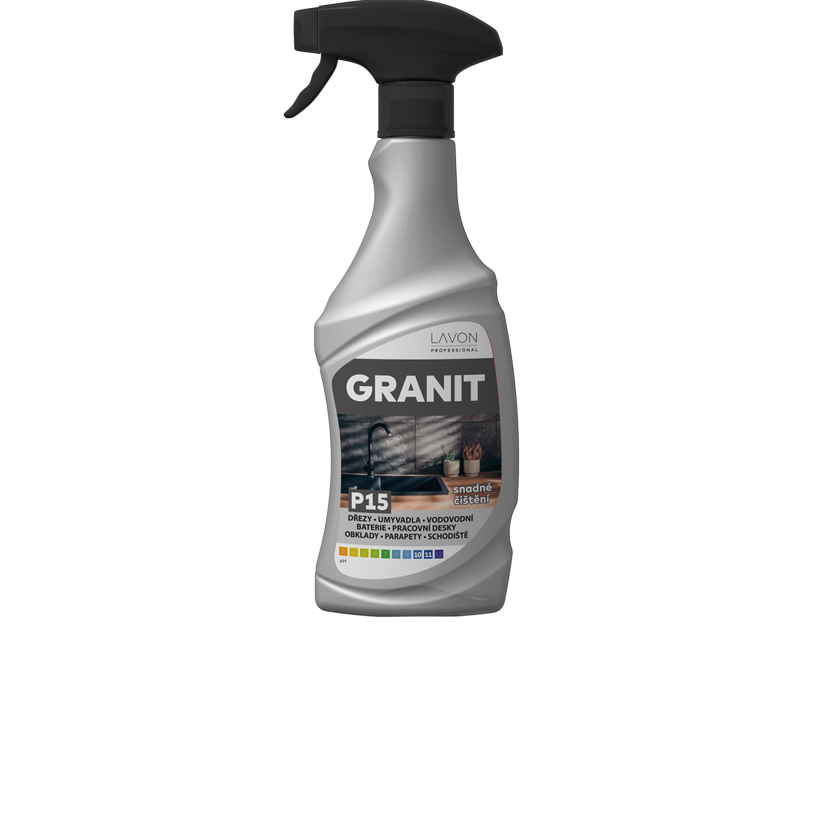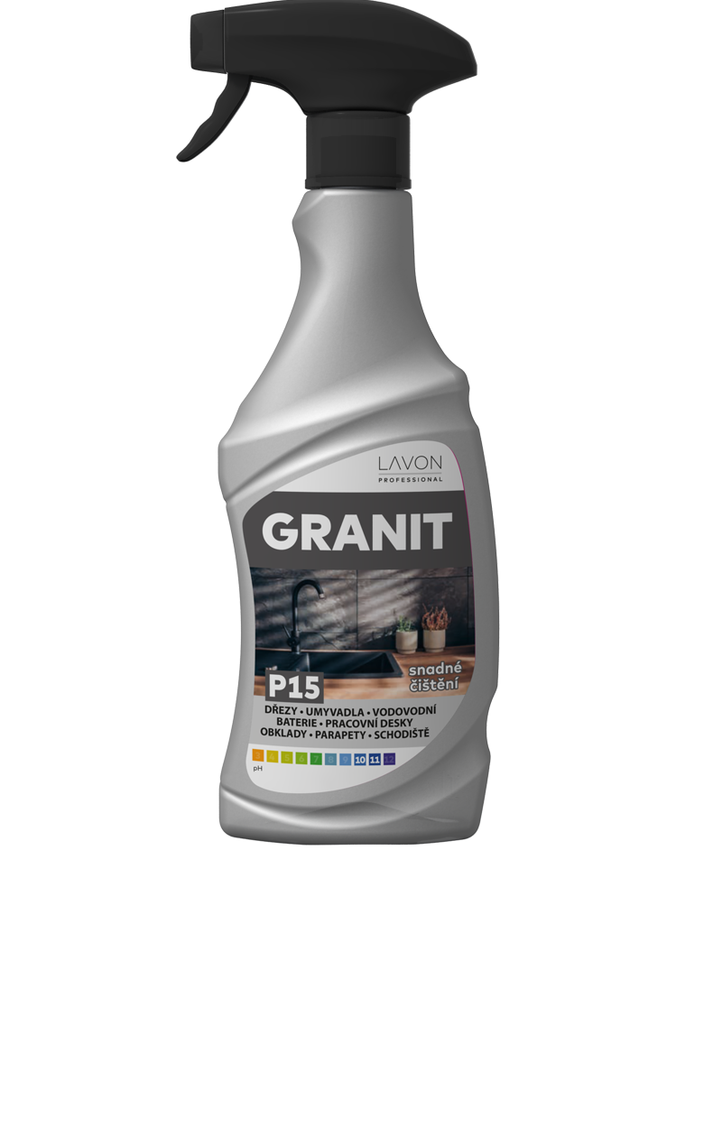 Lavon Granit je speciální čistič určený na všechny druhy granitových povrchů (granitové kompozity). Snadno odstraňuje nečistoty bez poškození povrchu. Vhodné na dřezy, prkénka, kuchyňské a jiné pracovní desky, obklady, umyvadla, vodovodní baterie, dlažby, schodiště, parapety.