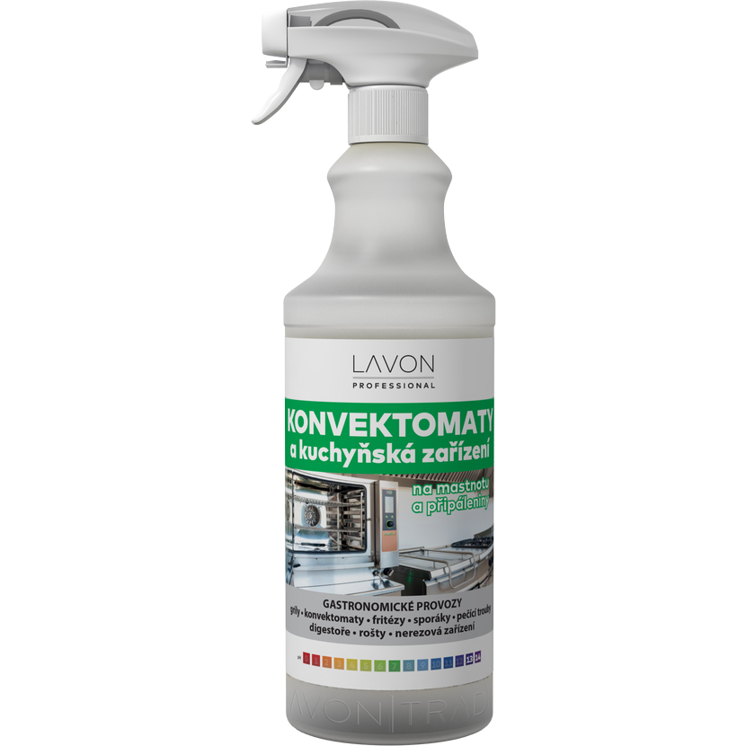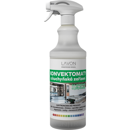 Lavon konvektomaty a kuchyňská zařízení 1 l je vysoce koncentrovaný prostředek určený pro profesionální použití v restauracích, firemních a školních jídelnách, hotelích, pekárnách, řeznictvích, potravinářských provozech apod. Účinně a rychle odstraňuje připáleniny, mastnotu, nepříjemné pachy, zbytky po pečených, grilovaných a smažených pokrmech. Je vhodný pro povrchy z nerezové oceli. Veškerá zařízení čistí za studena. Použití při vyšších teplotách však usnadňuje mytí obzvláště odolných nečistot a napečenin. Přípravek lze použít na grily, konvektomaty, fritézy, sporáky, pečící trouby, digestoře, rošty, nerezová zařízení. Není vhodný na materiály, které nejsou odolné vůči působení alkálií, jako je hliník, mosaz, měď, lakované, pozinkované a podobné povrchy.