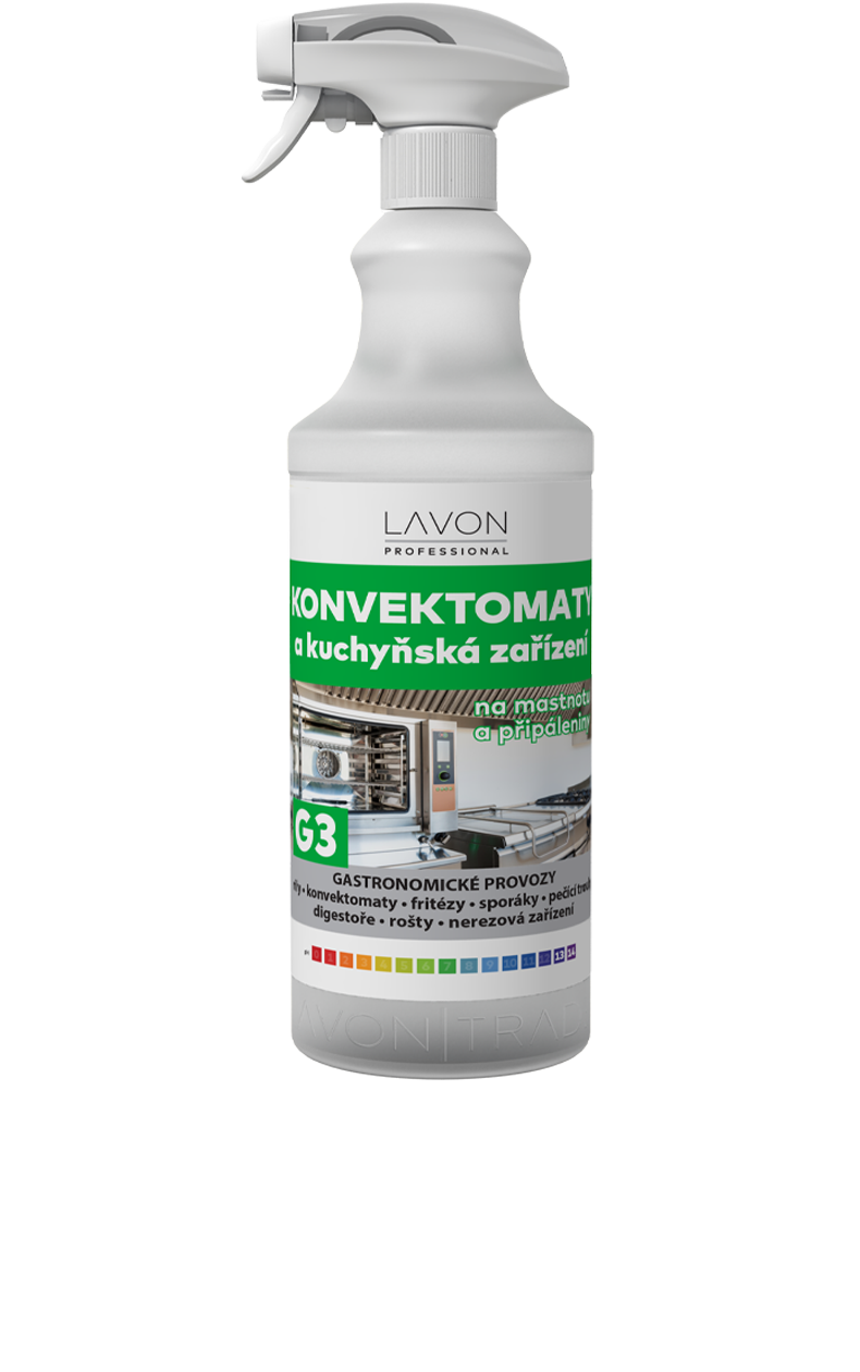 Lavon konvektomaty a kuchyňská zařízení 1 l je vysoce koncentrovaný prostředek určený pro profesionální použití v restauracích, firemních a školních jídelnách, hotelích, pekárnách, řeznictvích, potravinářských provozech apod. Účinně a rychle odstraňuje připáleniny, mastnotu, nepříjemné pachy, zbytky po pečených, grilovaných a smažených pokrmech. Je vhodný pro povrchy z nerezové oceli. Veškerá zařízení čistí za studena. Použití při vyšších teplotách však usnadňuje mytí obzvláště odolných nečistot a napečenin. Přípravek lze použít na grily, konvektomaty, fritézy, sporáky, pečící trouby, digestoře, rošty, nerezová zařízení. Není vhodný na materiály, které nejsou odolné vůči působení alkálií, jako je hliník, mosaz, měď, lakované, pozinkované a podobné povrchy.