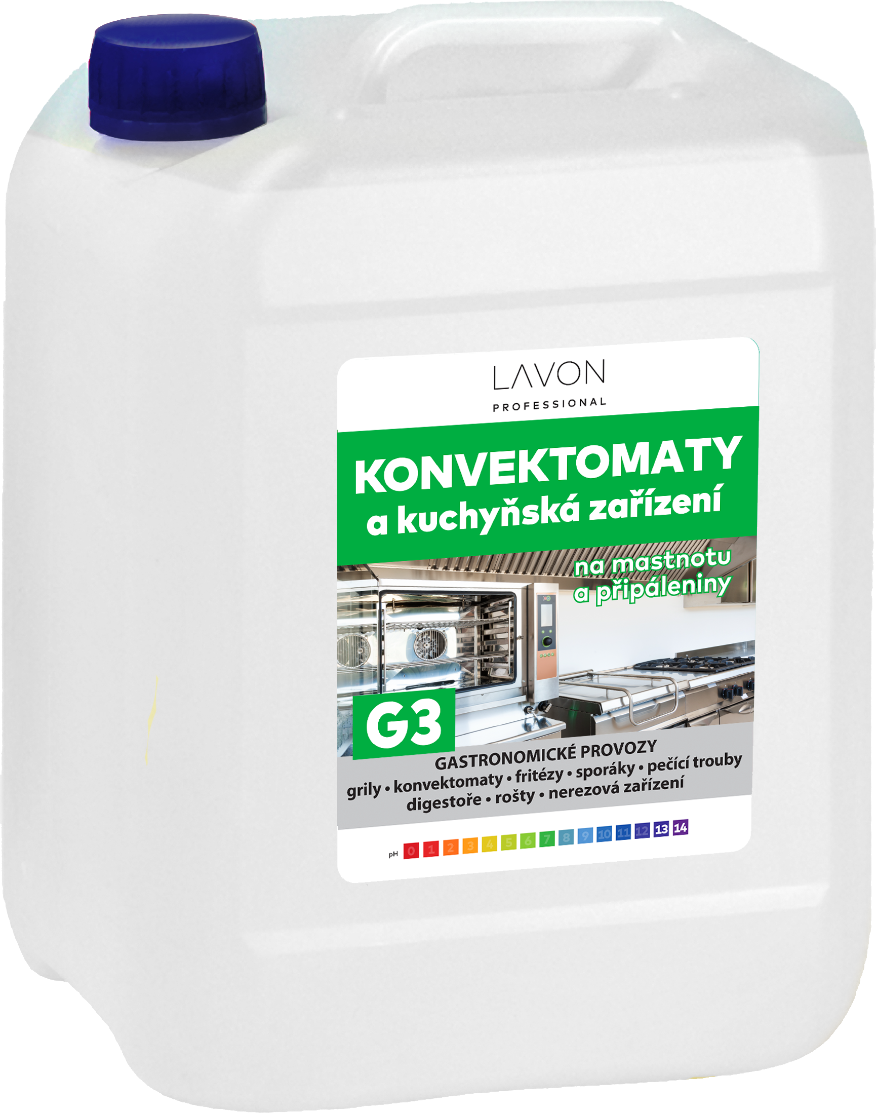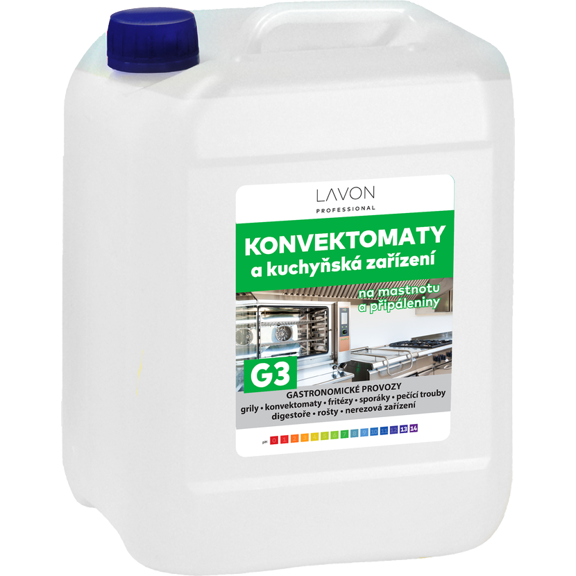 Lavon konvektomaty a kuchyňská zařízení 5 l je vysoce koncentrovaný prostředek určený pro profesionální použití v restauracích, firemních a školních jídelnách, hotelích, pekárnách, řeznictvích, potravinářských provozech apod. Účinně a rychle odstraňuje připáleniny, mastnotu, nepříjemné pachy, zbytky po pečených, grilovaných a smažených pokrmech. Je vhodný pro povrchy z nerezové oceli. Veškerá zařízení čistí za studena. Použití při vyšších teplotách však usnadňuje mytí obzvláště odolných nečistot a napečenin. Přípravek lze použít na grily, konvektomaty, fritézy, sporáky, pečící trouby, digestoře, rošty, nerezová zařízení. Není vhodný na materiály, které nejsou odolné vůči působení alkálií, jako je hliník, mosaz, měď, lakované, pozinkované a podobné povrchy.