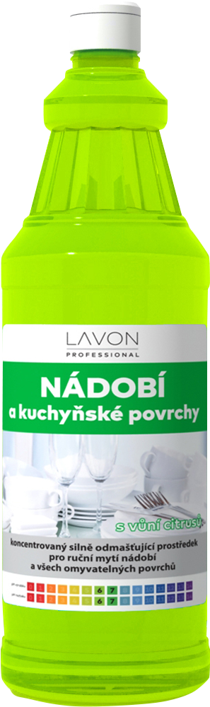 Lavon nádobí a kuchyňské povrchy 1 l je koncentrovaný, vysoce pěnivý prostředek s citrusovou vůní pro ruční mytí nádobí a omyvatelných povrchů. Účinně a rychle odmašťuje, zajistí čistotu a lesk všech druhů nádobí a zvláště kuchyňských povrchů.