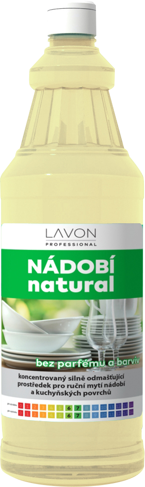 Lavon nádobí natural 1 l je koncentrovaný, vysoce pěnivý prostředek pro ruční mytí nádobí a kuchyňských povrchů bez parfemace a barviv. Účinně a rychle odstraňuje mastnotu a další nečistoty. Zajistí čistotu a lesk všech druhů nádobí a kuchyňských povrchů.