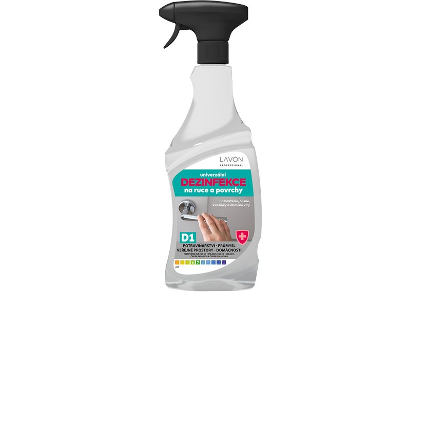 LAVON univerzální dezinfekce na ruce a povrchy je biocidní přípravek pro spotřebitelské a profesionální použití v potravinářství, průmyslu, domácnostech a veřejných prostorách. Určen k dezinfekci rukou, pracovních ploch či povrchů zařízení. V rámci prevence používat na místa, která přicházejí do častého kontaktu s rukama (kliky, zábradlí, vodovodní baterie apod.). NA BAKTERIE, KVASINKY, PLÍSNĚ A OBALENÉ VIRY.