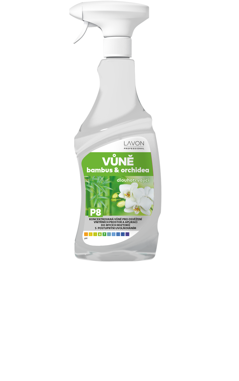 LAVON vůně BAMBUS & ORCHIDEA 500 ml je koncentrovaná prostorová vůně s postupným uvolňováním. Vhodná i k ředění. Jednoduše aplikujete do ovzduší pomocí rozprašovače nebo volně nalijete do mycích roztoků.